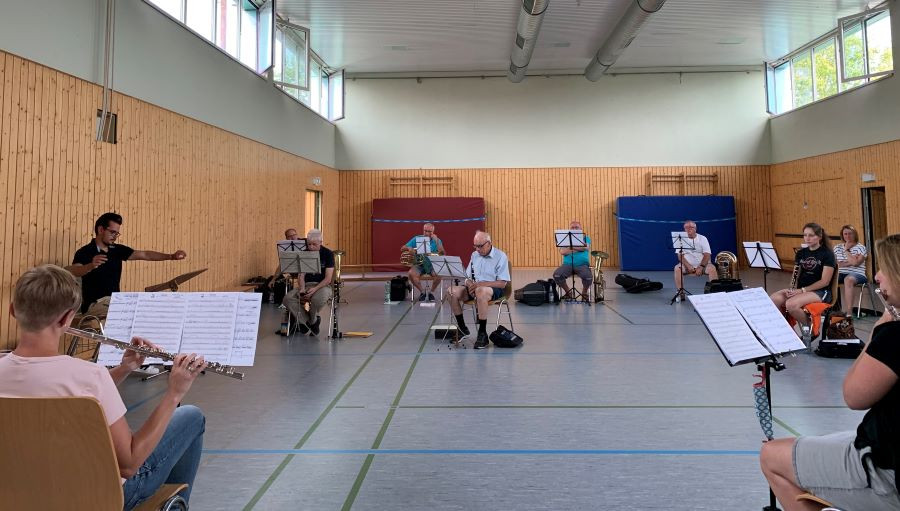 Immerhin hatten wir uns schon wieder viel Freiheit und Normalität zurückgeholt. Seit dem Sommer konnten wir wieder mit der gesamten Kapelle proben und das, was jeder für sich im “Homeoffice” und in den Registerproben erarbeitet hatte, zu großer Musik zusammensetzen. Hierbei hat unser Dirigent Miha Loncar wirklich großartige Arbeit geleistet! Das Maske-Tragen und der größere Abstand waren nur kleine Wermutstropfen, die wir dabei gerne in Kauf genommen haben. Aber das Virus will es uns nicht ganz so leicht machen - denn kaum hatten wir Hygienekonzepte und allerhand Alternativen vor Augen, um das Erprobte aufführen zu können, da geht alles wieder von vorne los - Da Capo - eben.