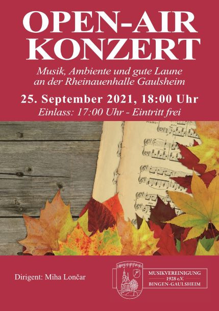 Wir freuen uns, Sie auf dem Gelände hinter der Gaulsheimer Rheinauenhalle begrüßen zu dürfen. Wie Sie es von uns gewohnt sind, erwarten Sie neben einem tollen Ambiente, neue, stimmungsvolle Musikstücke, leckere Getränke sowie kleine Köstlichkeiten aus der Küche.
