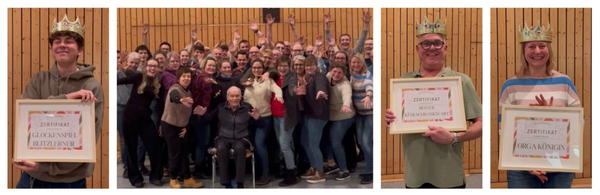 Es war der perfekte Anlass, noch einmal ins vergangene Jahr zurückzublicken und Danke zu sagen an alle, die sich immer wieder mit besonders viel Herzblut für den Verein engagieren und damit unsere großartige Gemeinschaft lebendig halten. (Das wir dabei auch noch viel Spaß hatten, habt ihr sicher auf unserem Facebook- oder Instagramvideo gesehen, in dem wir unseren Musikerinnen und Musikern für ihre besonderen „Superkräfte“ eine Krone aufgesetzt haben).