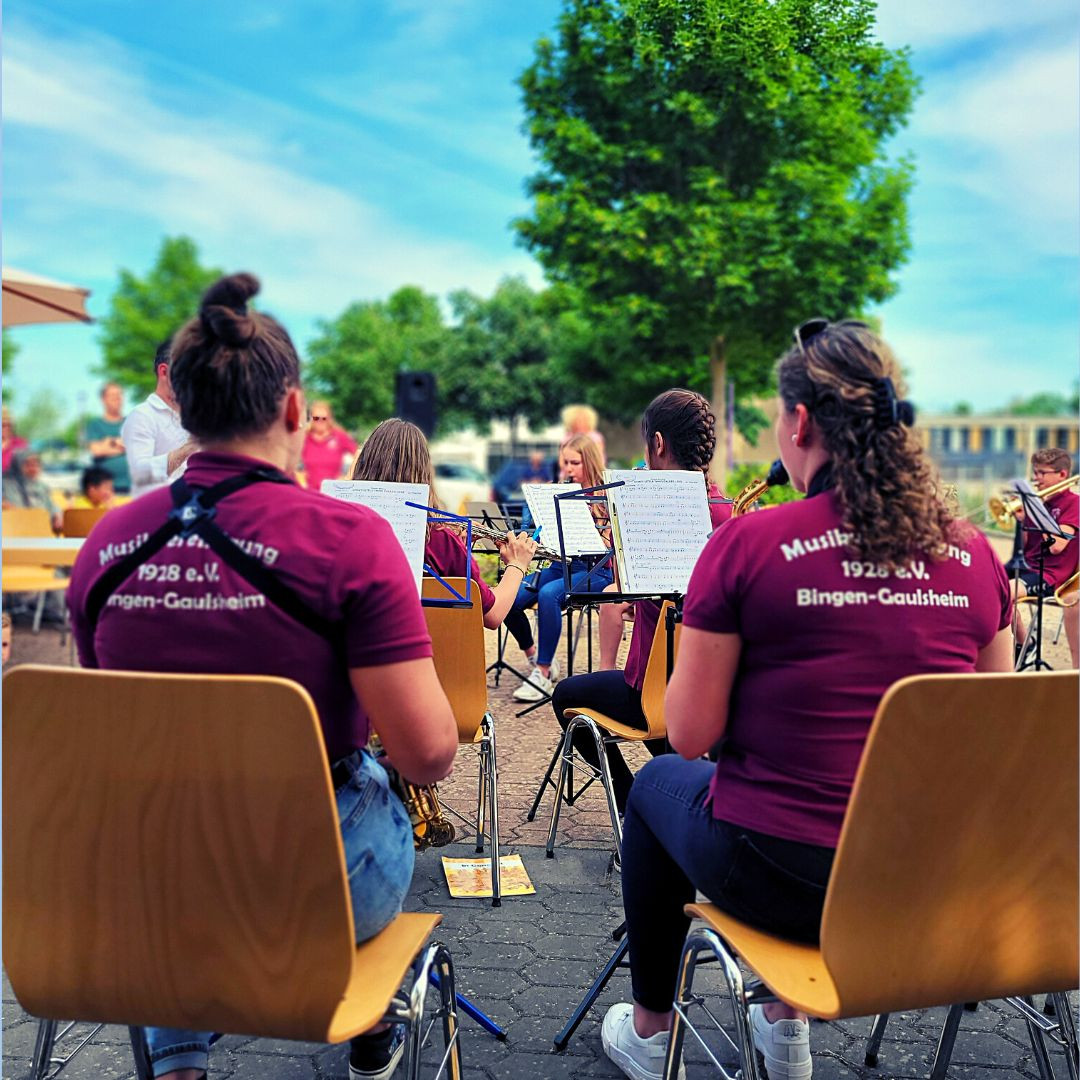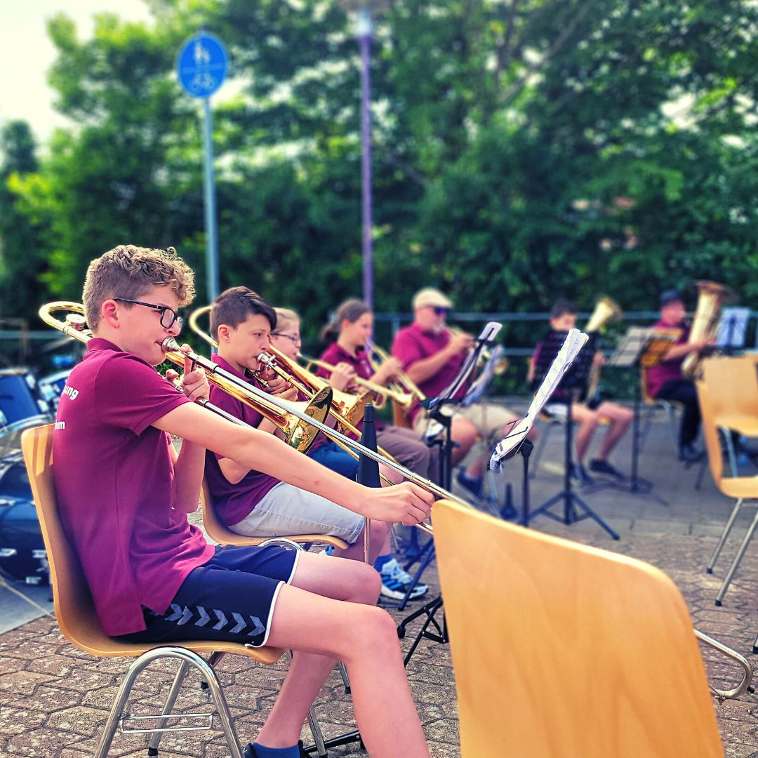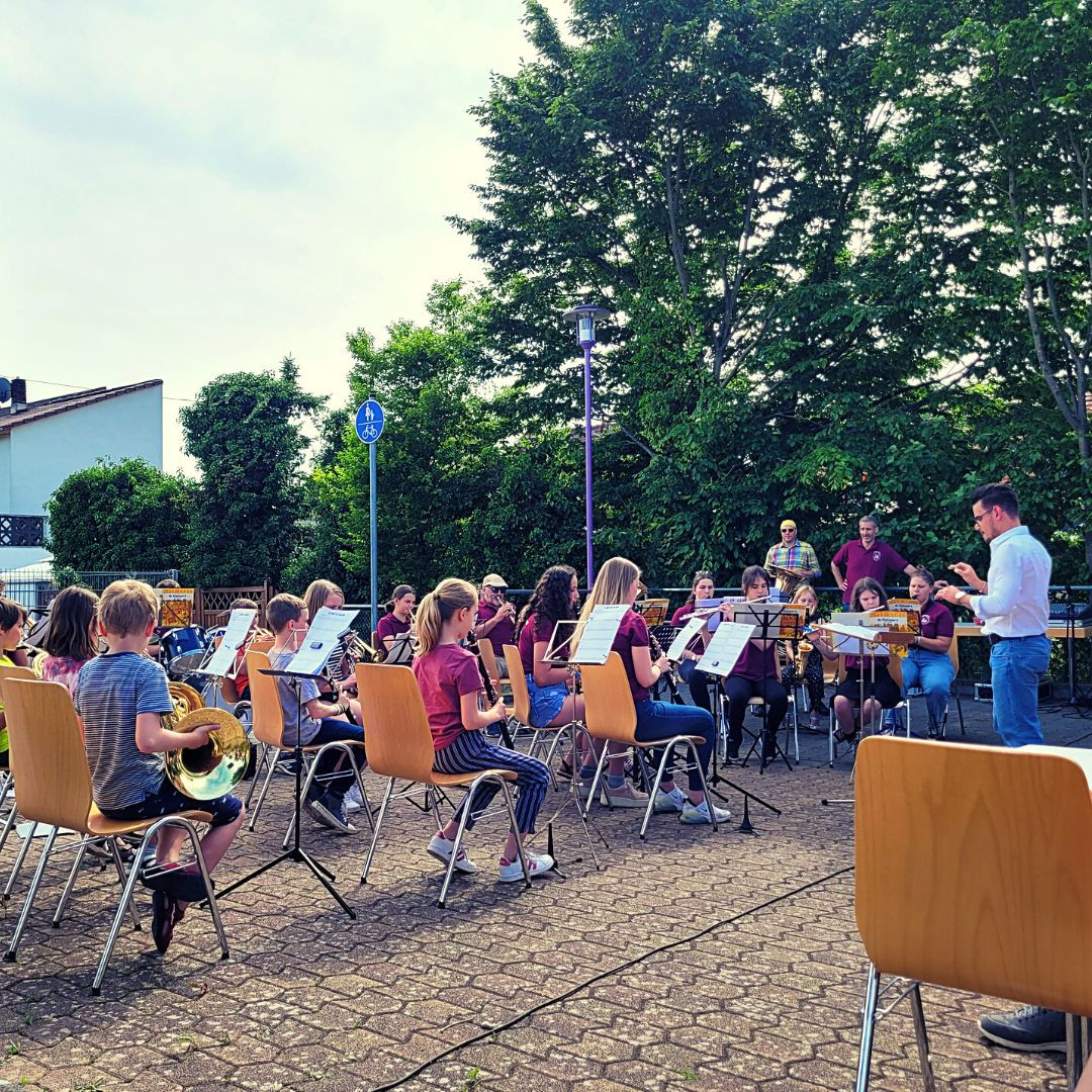 Am 22.05.2022 waren alle Nachwuchskünstlerinnen und Künstler nach zwei Jahren Pause wieder zusammengekommen, um hinter die Gaulsheimer Rheinauenhalle – bei strahlendem Sonnenschein - ihre musikalischen Fortschritte und ihren Spaß dabei zu präsentieren.