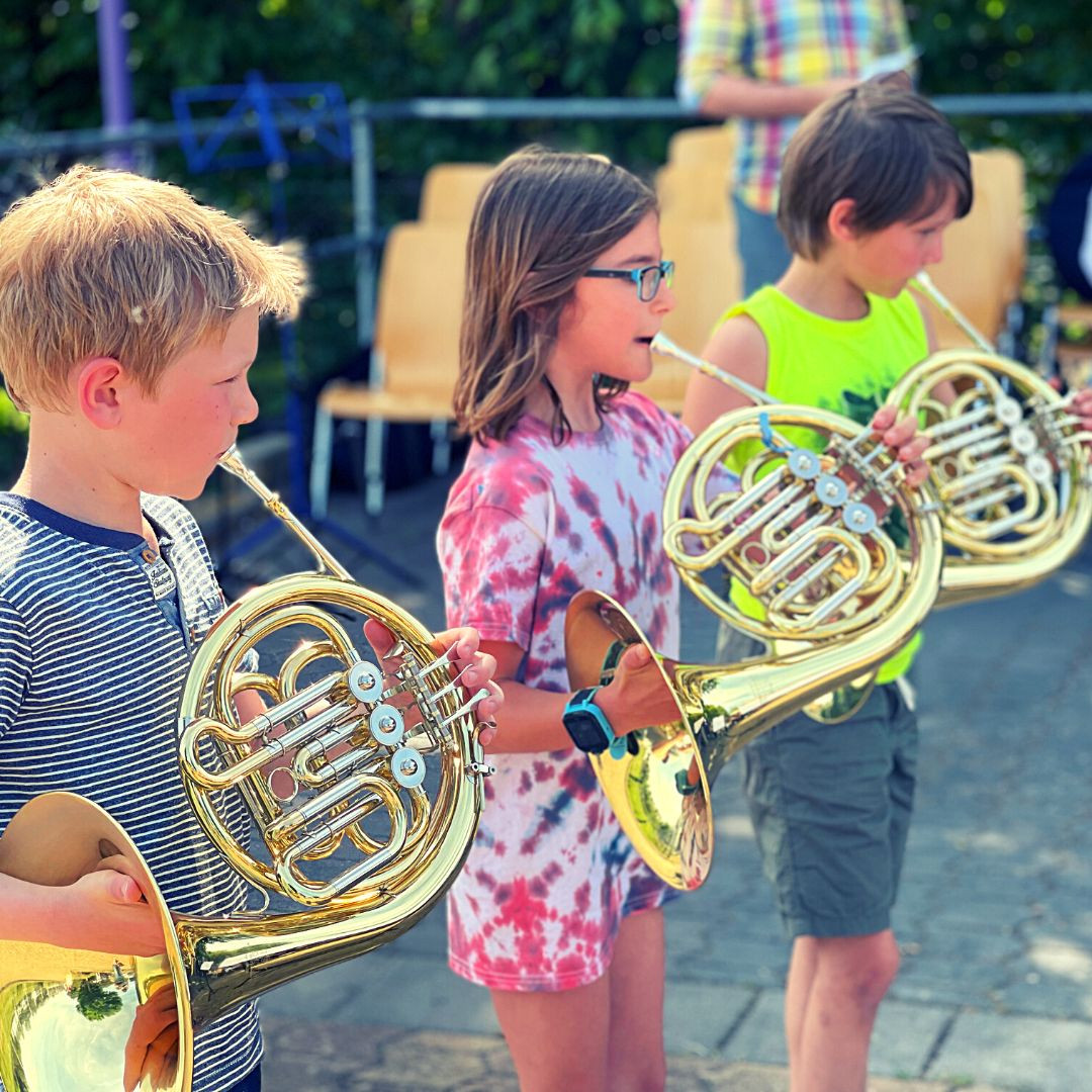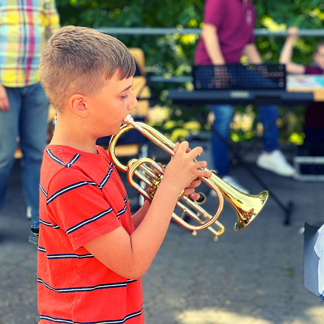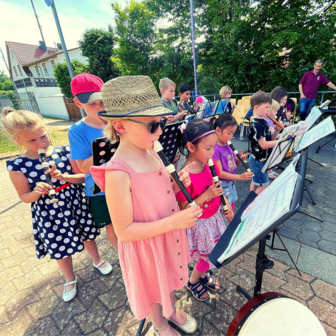 Am 22.05.2022 waren alle Nachwuchskünstlerinnen und Künstler nach zwei Jahren Pause wieder zusammengekommen, um hinter die Gaulsheimer Rheinauenhalle – bei strahlendem Sonnenschein - ihre musikalischen Fortschritte und ihren Spaß dabei zu präsentieren.